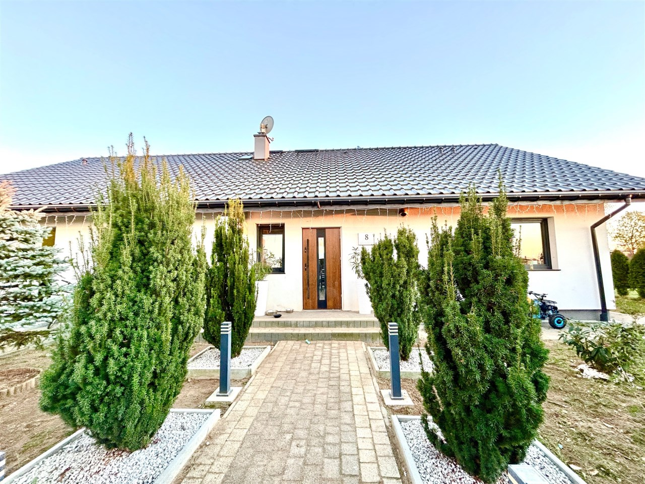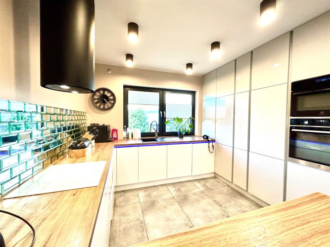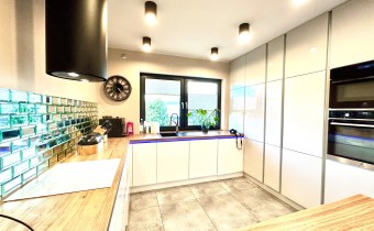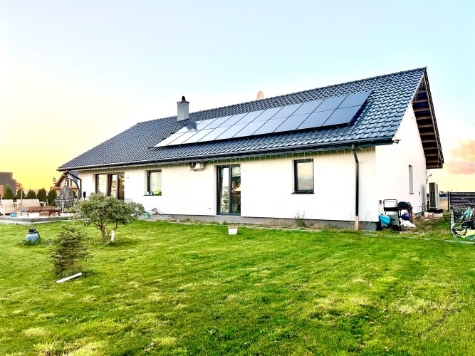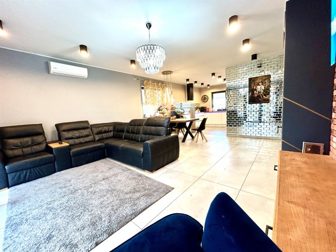 Dom wybudowany w nowej technologii, ogrzewanie podłogowe, pompa ciepła, kominek grawitacyjny,  fotowoltaika (umowa na starych zasadach prosument ), klimatyzacja z zamontowanymi dwoma jednostkami w salonie i głównej sypialni, odkurzacz centralny.