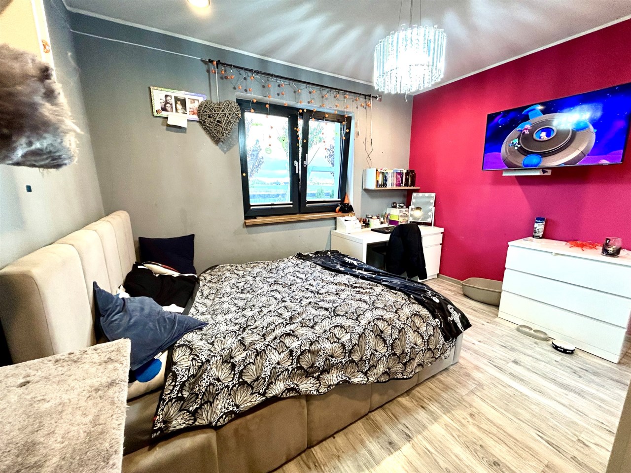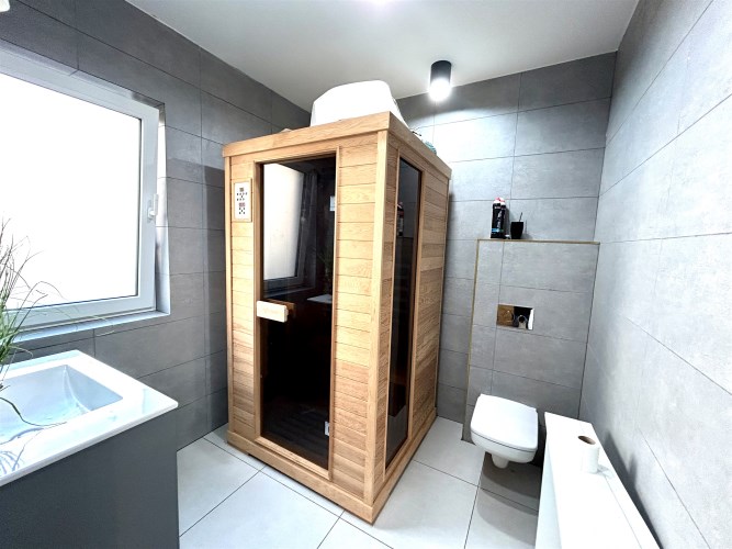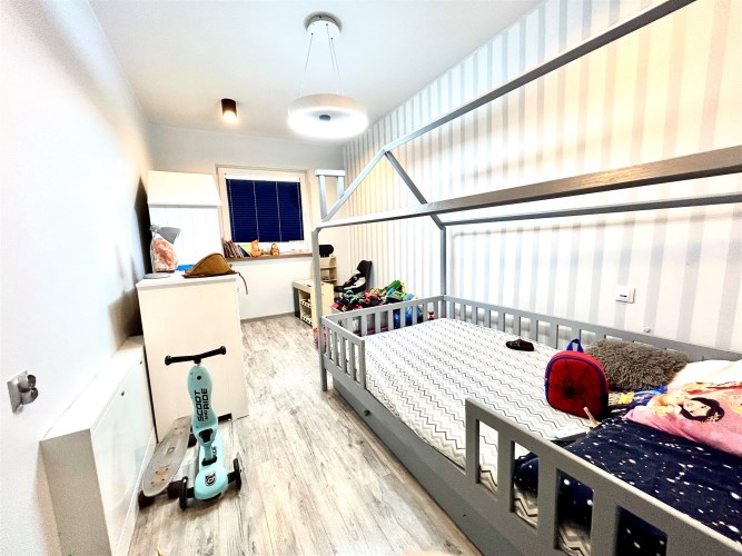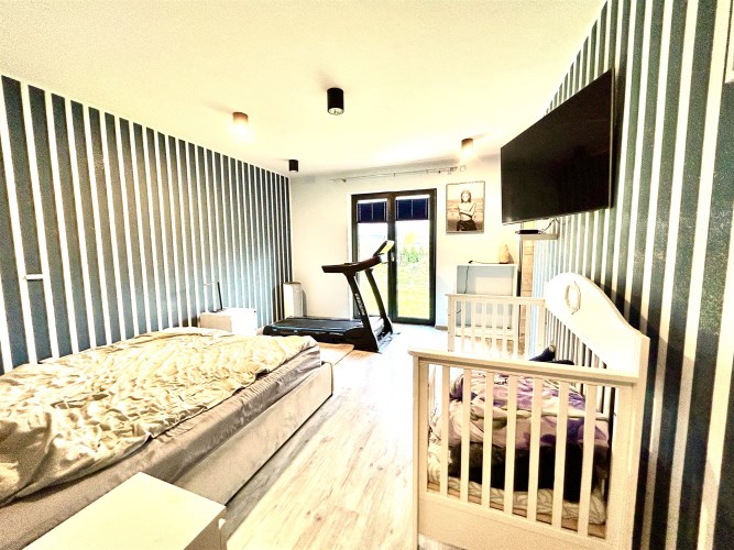 Na powierzchnię użytkową składa się przestronny salon połączony z aneksem kuchennym i wyjściem na taras i do ogrodu, spiżarnia, pomieszczenie gospodarcze, sypiania główna z garderobą dodatkowo 3 pokoje z czego jeden z prywatną łazienką i sauną, oraz przestronna łazienka z wanną i natryskiem.