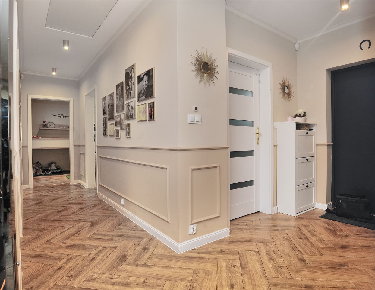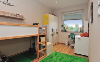 Układ pomieszczeń: - Przestronny salon z aneksem kuchennym – 31,90 m² - 3 sypialnie – 14,26 m² / 10,20 m² / 8,01 m² - Łazienka – 5,20 m² - Wiatrołap – 3,74 m² - Korytarz – 6,69 m² - Kotłownia z pralnią – 6,37 m²