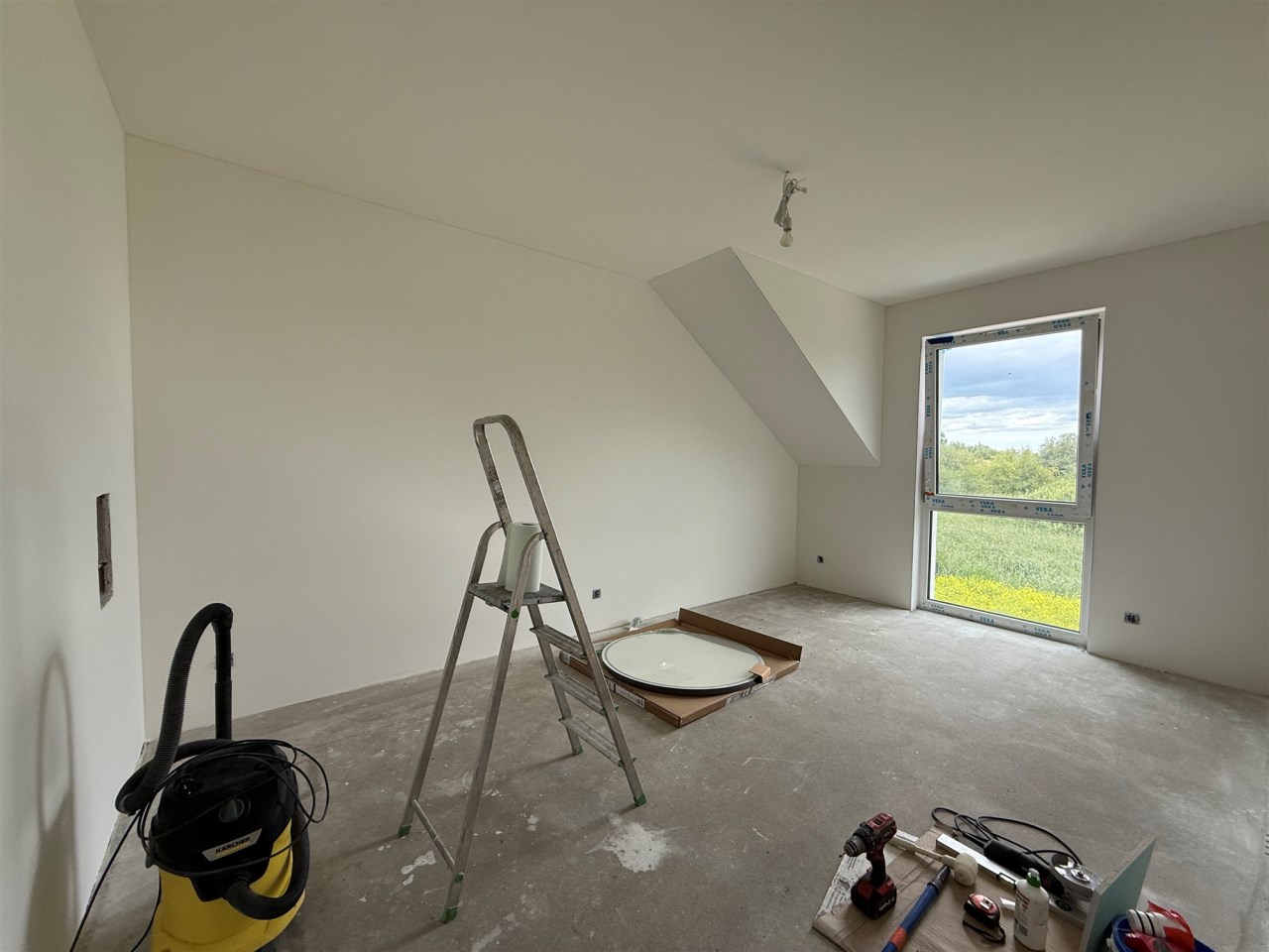Piętro : 4 sypialnie ( podłogi panele), łazienka z kabina i wanną ( glazura i terakota)