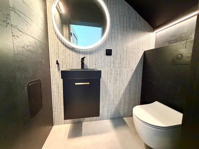 Na podłogach terakota, ściany gładzone malowane, wc wykończone w nowej glazurze i terakocie.