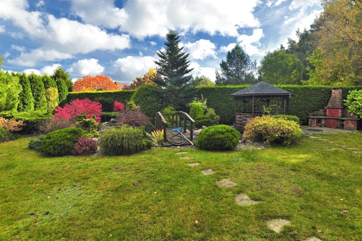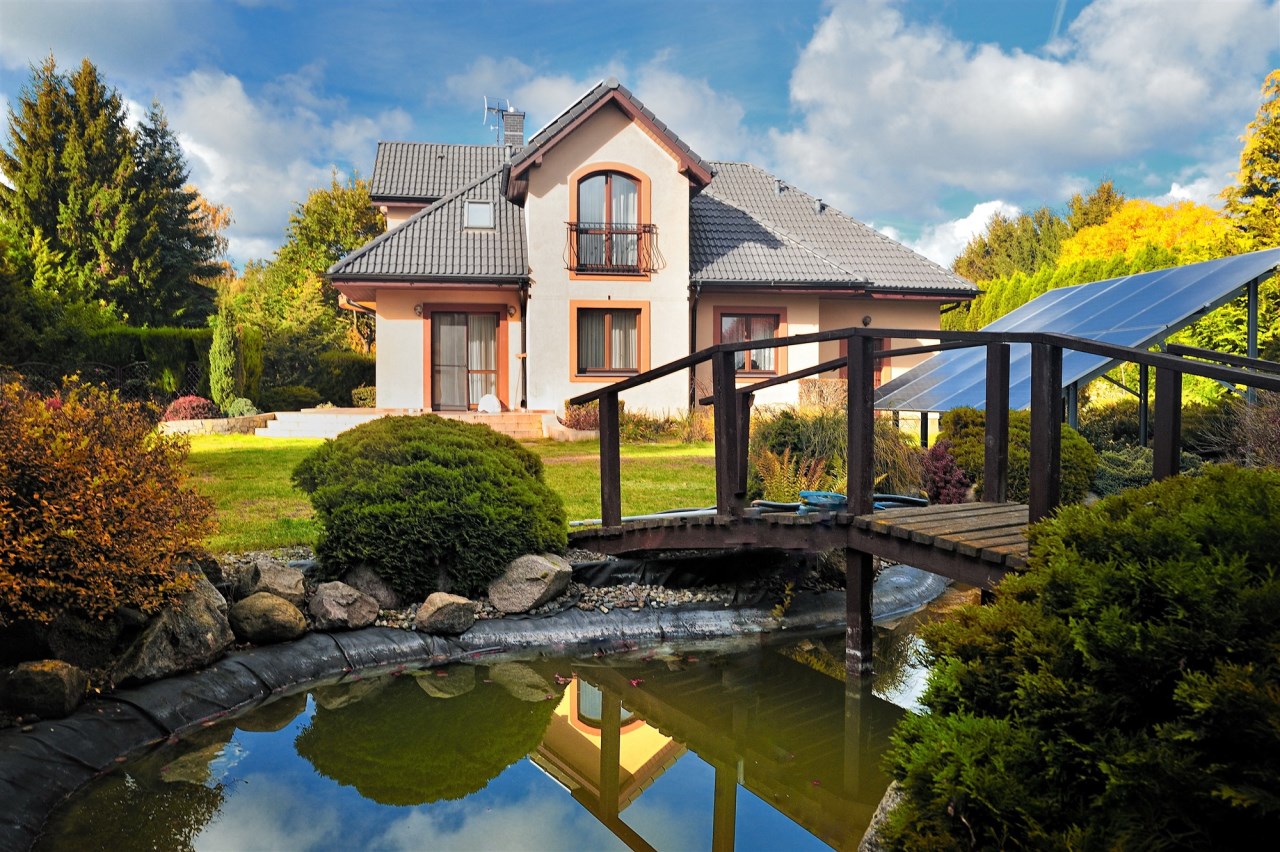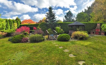 Ogród zagospodarowany. Liczne nasadzenia, oczko wodne z filtrem, altana itd itd.Â