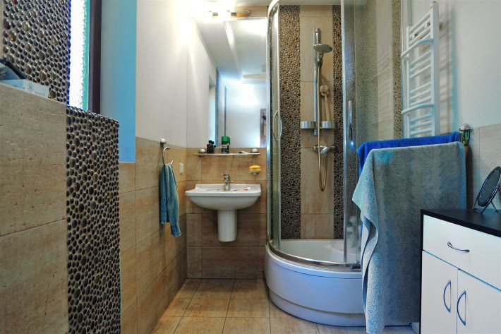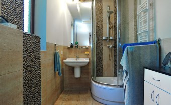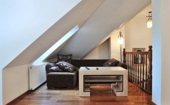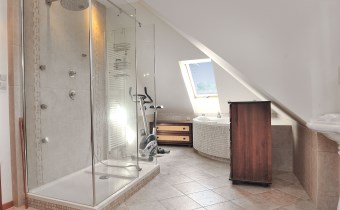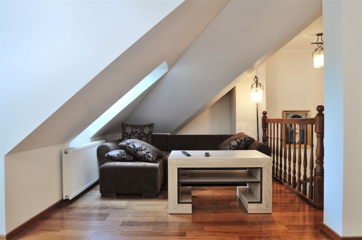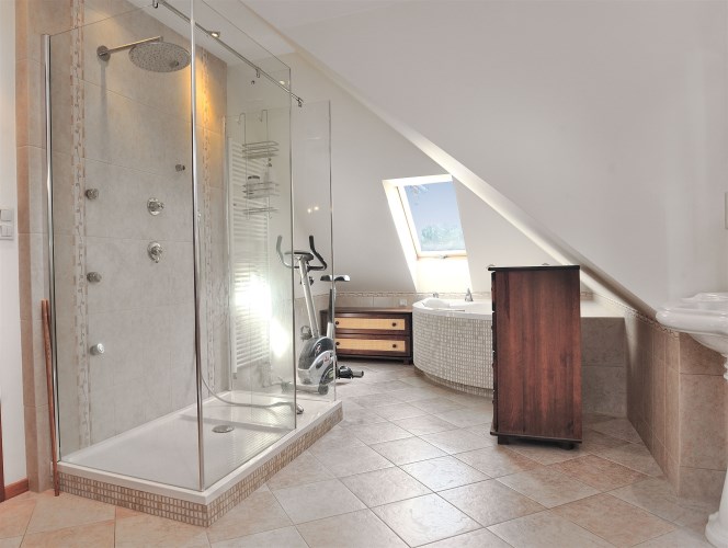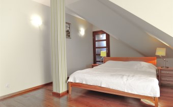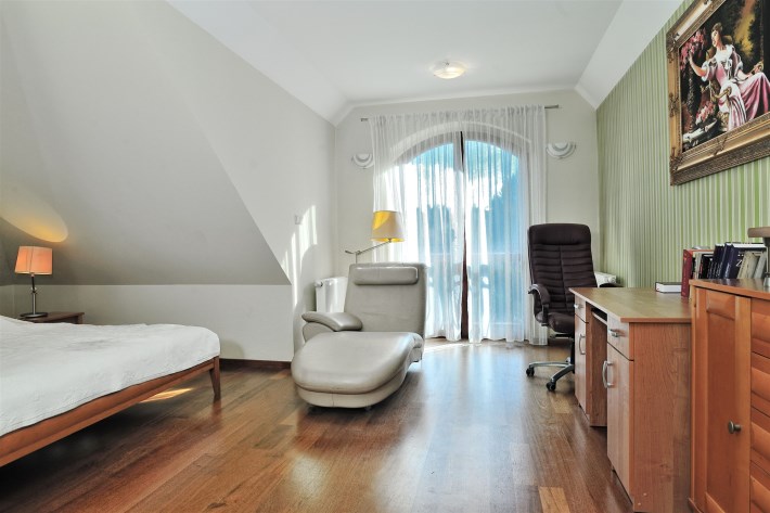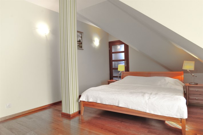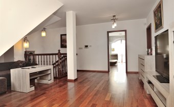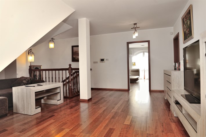 Na piętrze : dwa pokoje w tym jeden z osobną garderobą ,  salon łazienkowy.