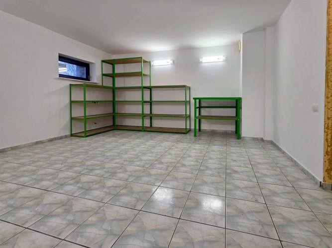 - Piwnica: przestronny garaż na trzy samochody (o powierzchni 62 m2), duże pomieszczenie (można tutaj zorganizować na przykład pokój bilardowy, pokój hobby itp.), łazienka z pralnią oraz kotłownia.