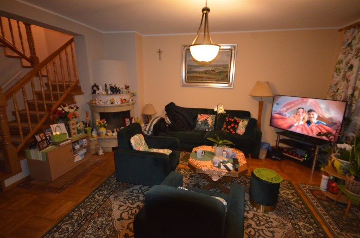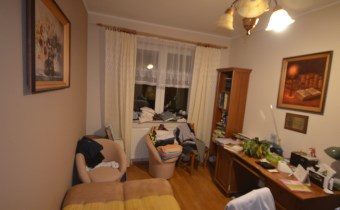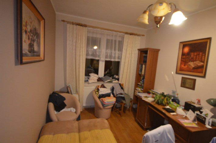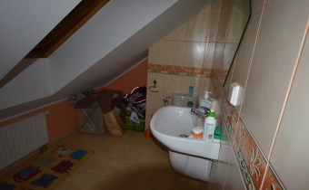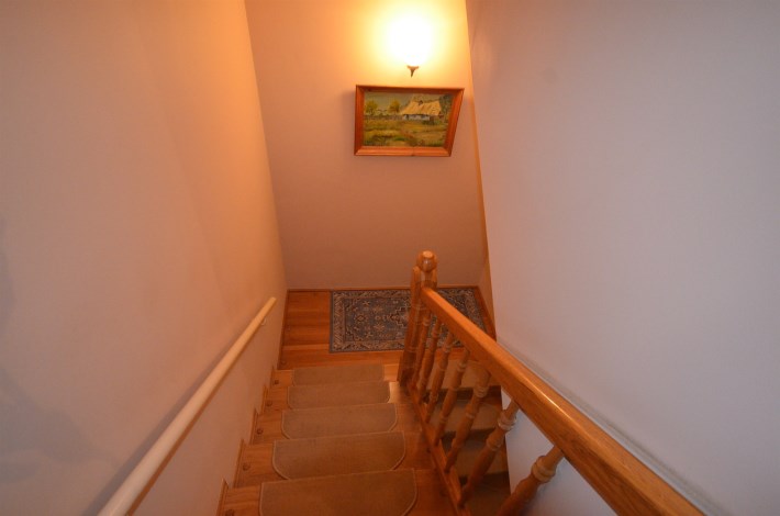 Na pierwszym piętrze znajdują się 3 pokoje, łazienka z wc i wanną. Na poddasze prowadzą również drewniane schody i jest tam zagospodarowany pokój, łazienka z wc oraz duży otwarty pokój z widokiem na ogród. Nieruchomość w pełni umeblowana w standardzie powyżej średniej, po remoncie 3 lata temu