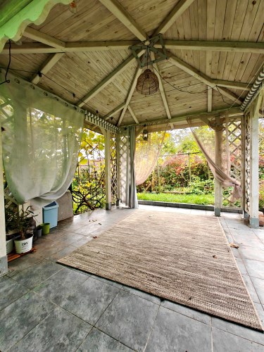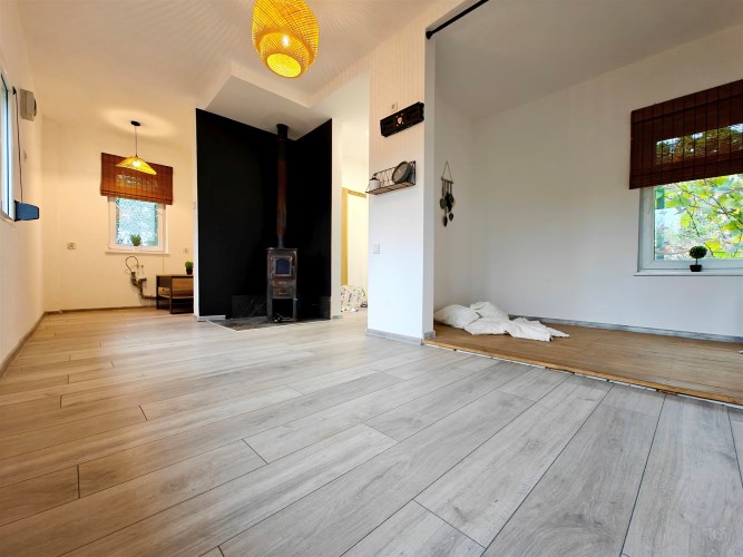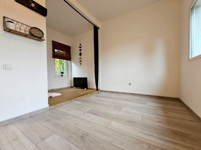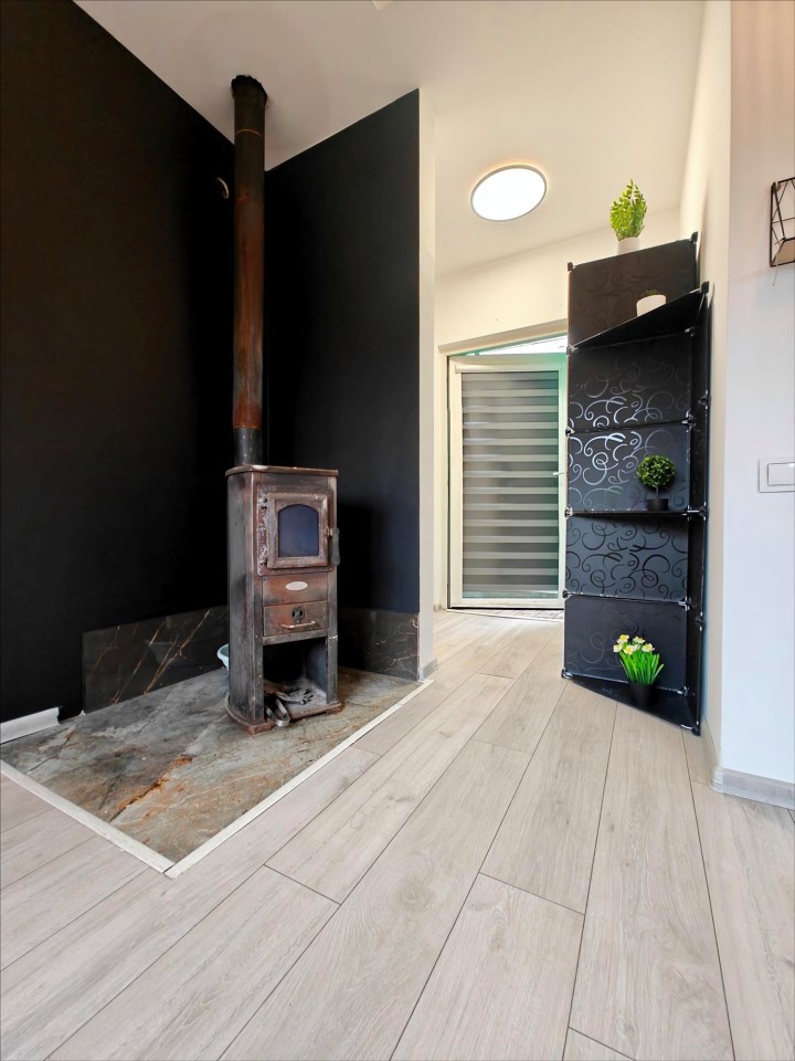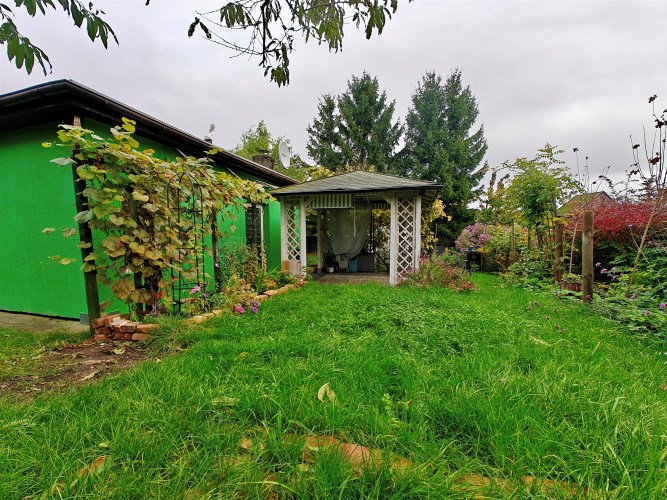 Domek został odświeżony i ocieplony styropianem, częściowo wymieniono okna, instalację elektryczną oraz zamontowano rolety. Istnieje możliwość zabudowy drugiego poziomu w lekkiej konstrukcji. Na działce znajduje się również altana, domek narzędziowy, szklarnia oraz kompostownik.