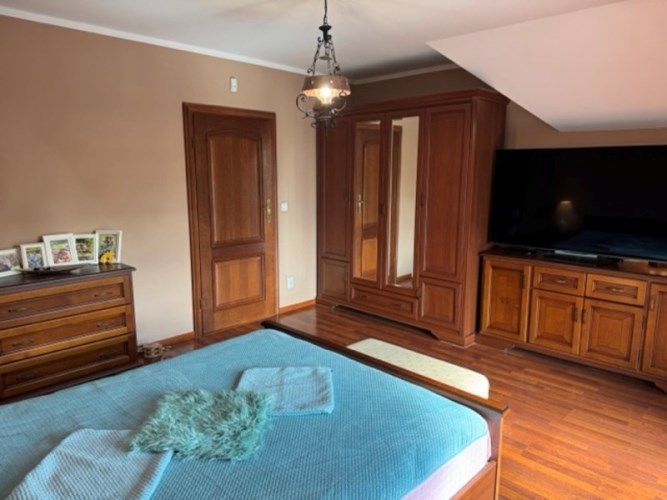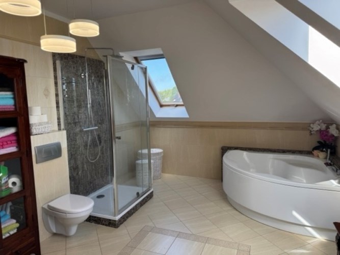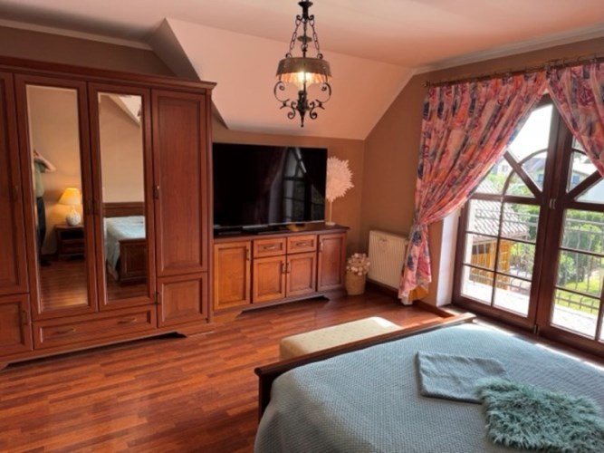 Poddasze: hall, 4 sypialnie (w tym główna z balkonem), łazienka.