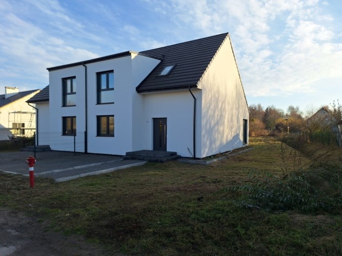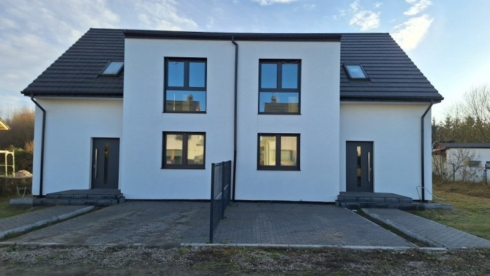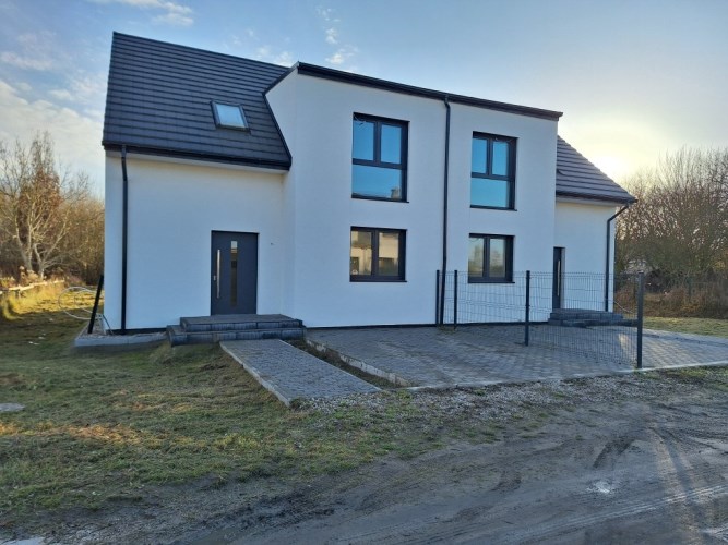 Na sprzedaż nowoczesny i komfortowy dom jednorodzinny w zabudowie bliźniaczej  w Zieleniewie ul.Cicha (powiat Stargardzki) niedaleko plaży i promenady nad Jeziorem Miedwie. (Prawa część bliźniaka patrząc od ulicy). Bezpośredni dojazd do domu drogą gruntową- utwardzoną. Dom o powierzchni całkowitej 148,48m2, w tym powierzchnia użytkowa domu 141,57m2 usytuowany na działce o powierzchni 546m2. Ogród od strony południowej co sprawia, iż przez cały dzień jest pięknie nasłoneczniony. Na końcu ogrodu ściana zieleni, co zapewnia intymność.