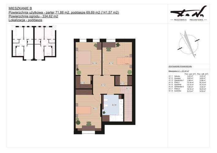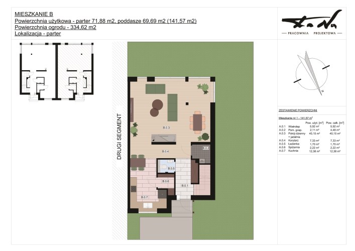 Układ pomieszczeń wyróżnia się funkcjonalnością i optymalnym zagospodarowaniem dostępnej powierzchni.