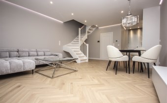 Nowoczesny dwupoziomowy bliźniak, o powierzchni 82m w którego skład wchodzą: