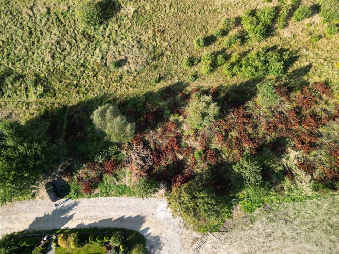 Dostępne media w utwardzonej drodze wewnętrznej przy działce - en. elektryczna (procedura przyłączenia w trakcie).