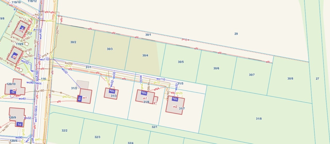 Działki objęte są decyzją o warunkach zabudowy umożliwiającą realizację inwestycji polegającej na budowie wolnostojących budynków mieszkalnych jednorodzinnych wraz z niezbędną infrastrukturą techniczną.