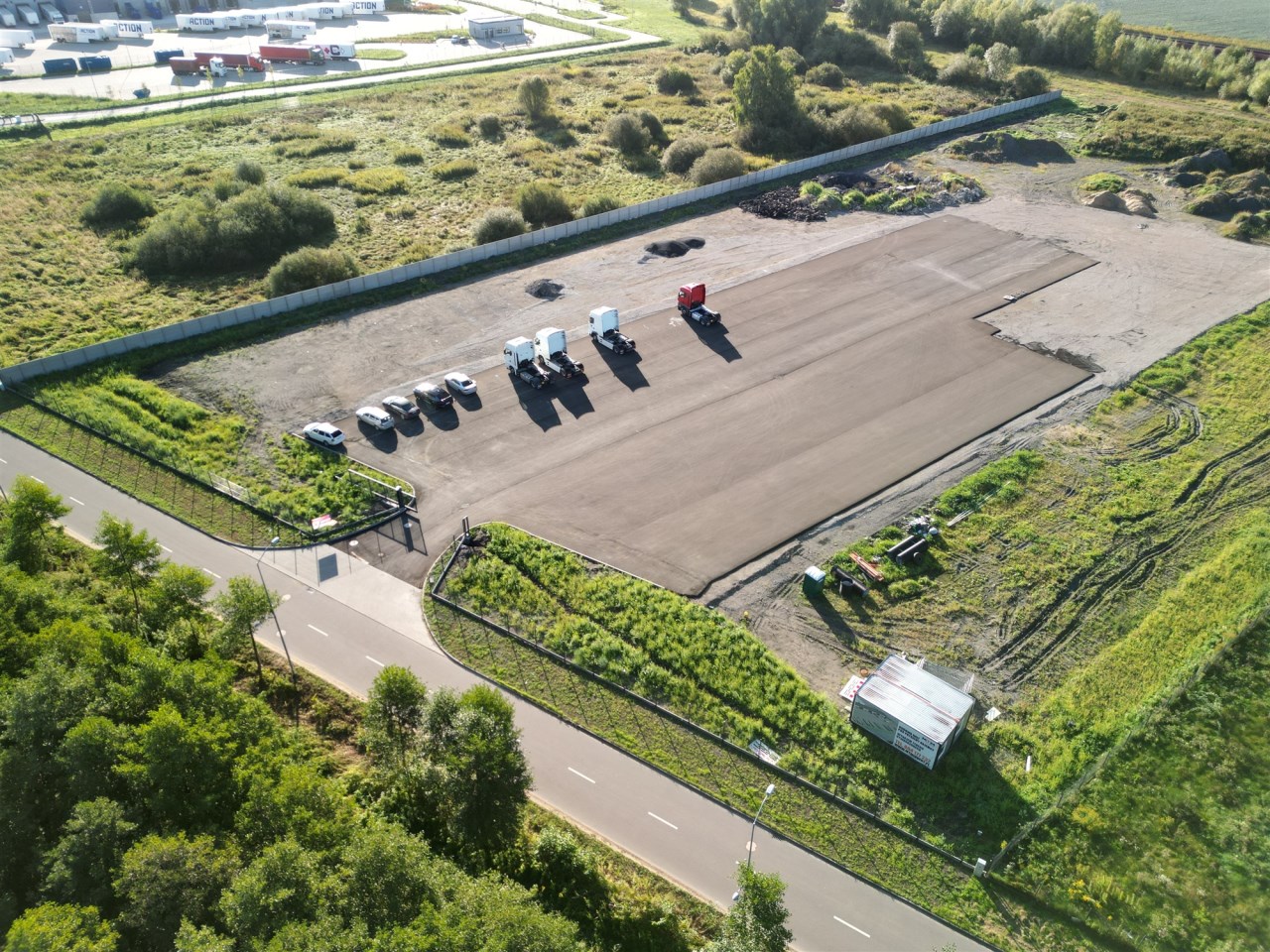 -Plac manewrowy przed budynkiem (w części odpowiadającej szerokości wynajętego segmentu) do wyłącznego korzystania przez Najemcę. Możliwość najmu dodatkowej powierzchni na placu składowym vis a vis obiektu.