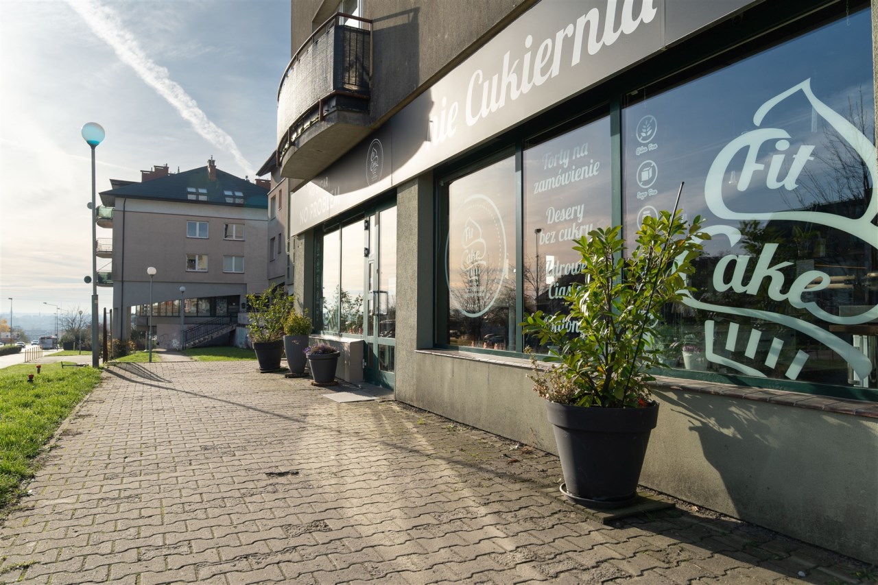 Lokal znajduje się w miejscu o wysokim natężeniu ruchu pieszego i samochodowego, w ciągu lokali z dużymi witrynami od ulicy. Funkcjonowała tu znana cukiernia-kawiarnia FitCake, dzięki czemu miejsce jest rozpoznawalne i ma stałą bazę klientów.