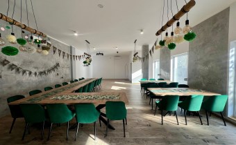 •    Sala wyposażona: stoły, krzesła, rzutnik multimedialny,