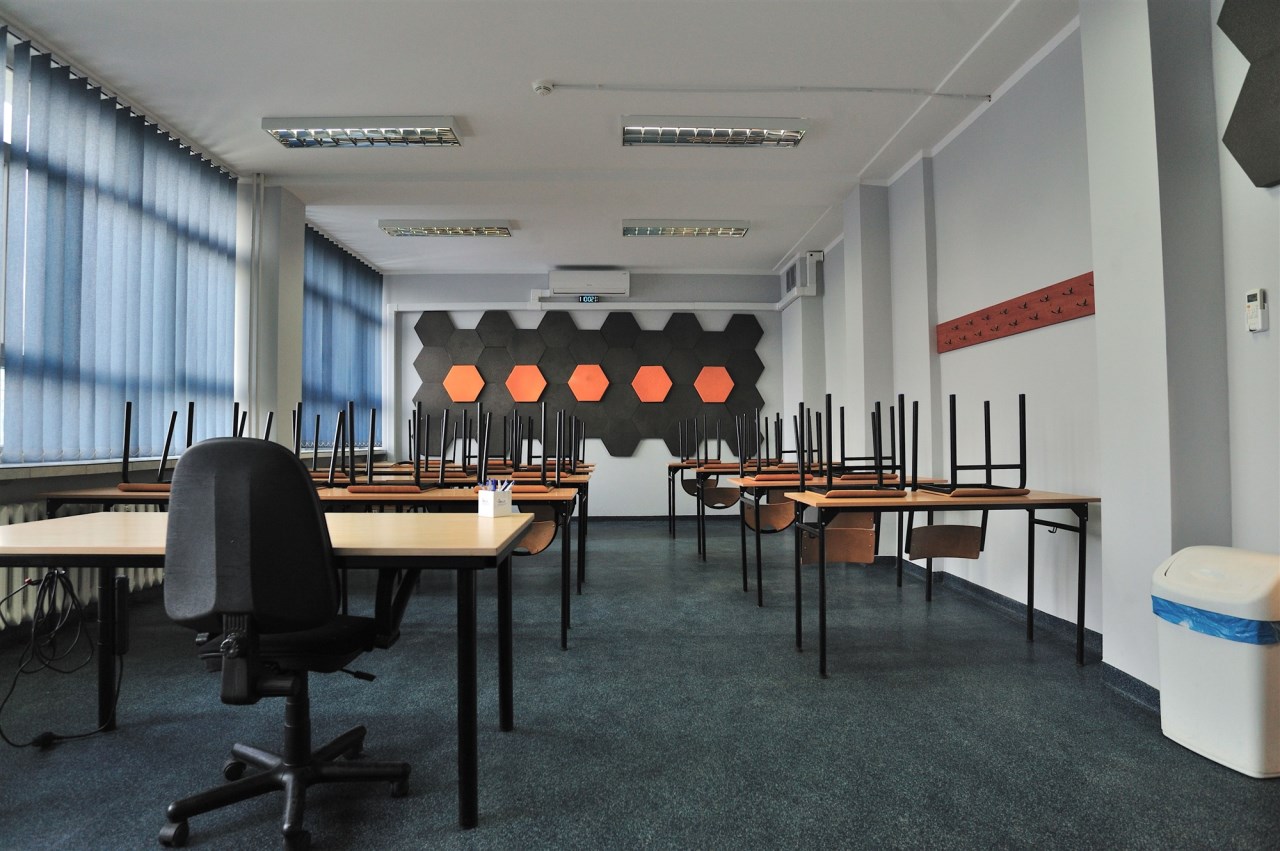 Ściany jasne, podłoga niepyląca .