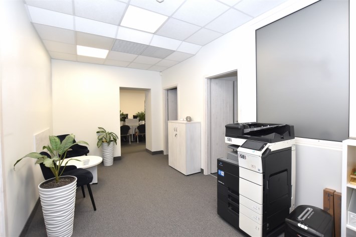Na 125m2 powierzchni użytkowej lokalu składają się 3 pokoje biurowe, sala konferencyjna, zaplecze socjalne oraz wc.