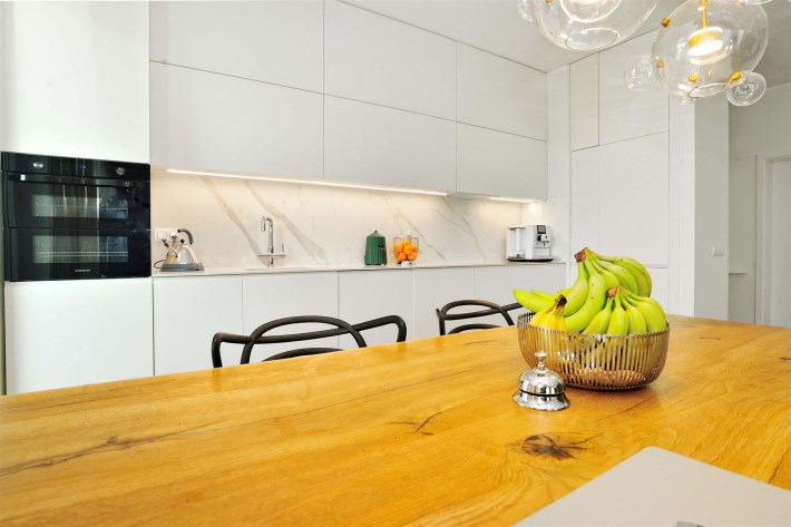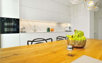 Nowoczesna, otwarta kuchnia w pełni wyposażona w sprzęt AGD