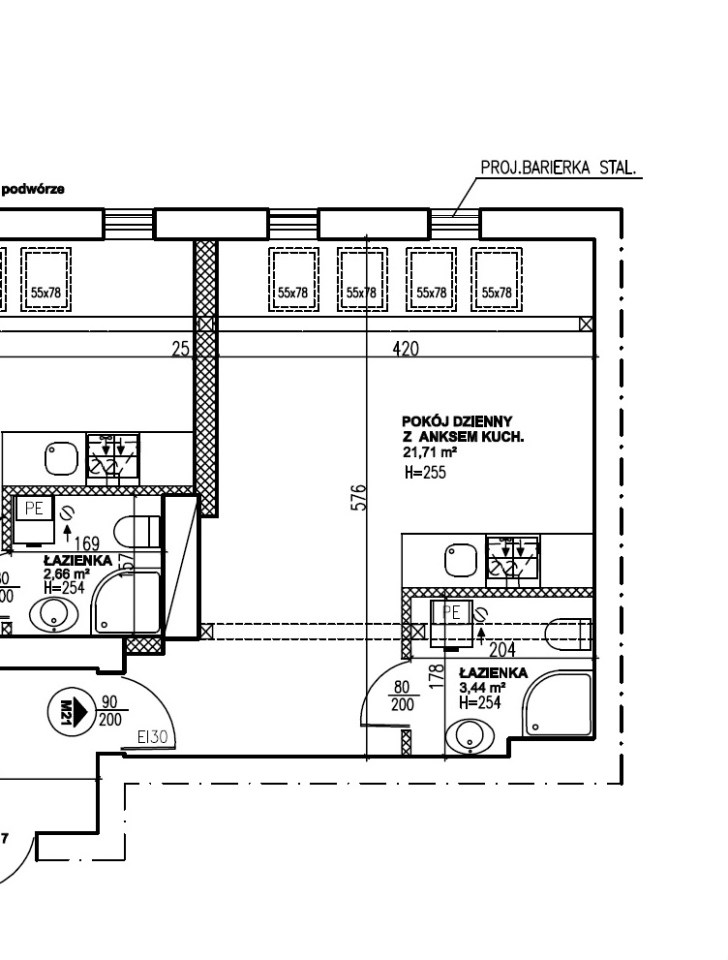 - pokój dzienny z aneksem kuchennym 21,71 m2,