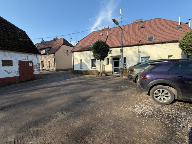 Budynek w którym położone jest mieszkanie jest 4 rodzinny na działce o powierzchni 614 m2. Zarządca dba o nieruchomość, która jest po remoncie i jest zadbana. Na działce znajduje się budynek z komórkami (komórka przynależna-6,4m2), które są dodatkowym miejscem do przechowywania, tak samo jak spora piwnica (5,4m2) oraz strych bezpośrednio nad mieszkaniem. Dodatkowo na działce jest miejsce do parkowania samochodów i kawałek ogródka do wspólnego korzystania.