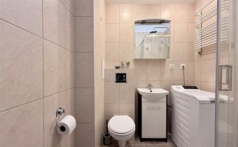 łazienka z kabiną prysznicową, dodatkowo wyposażona w elektryczne ogrzewanie podłogowe