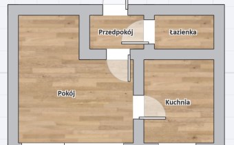 Układ: pokój, osobna kuchnia, łazienka, przedpokój.