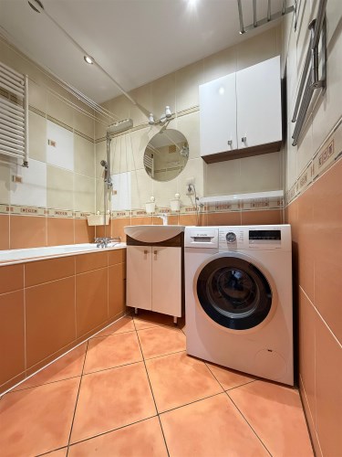 Kuchnia jest oddzielna, jasna, z oknem, wyposażona w zabudowę meblową. Łazienka oraz WC stanowią osobne pomieszczenia, co znacząco zwiększa wygodę mieszkańców.