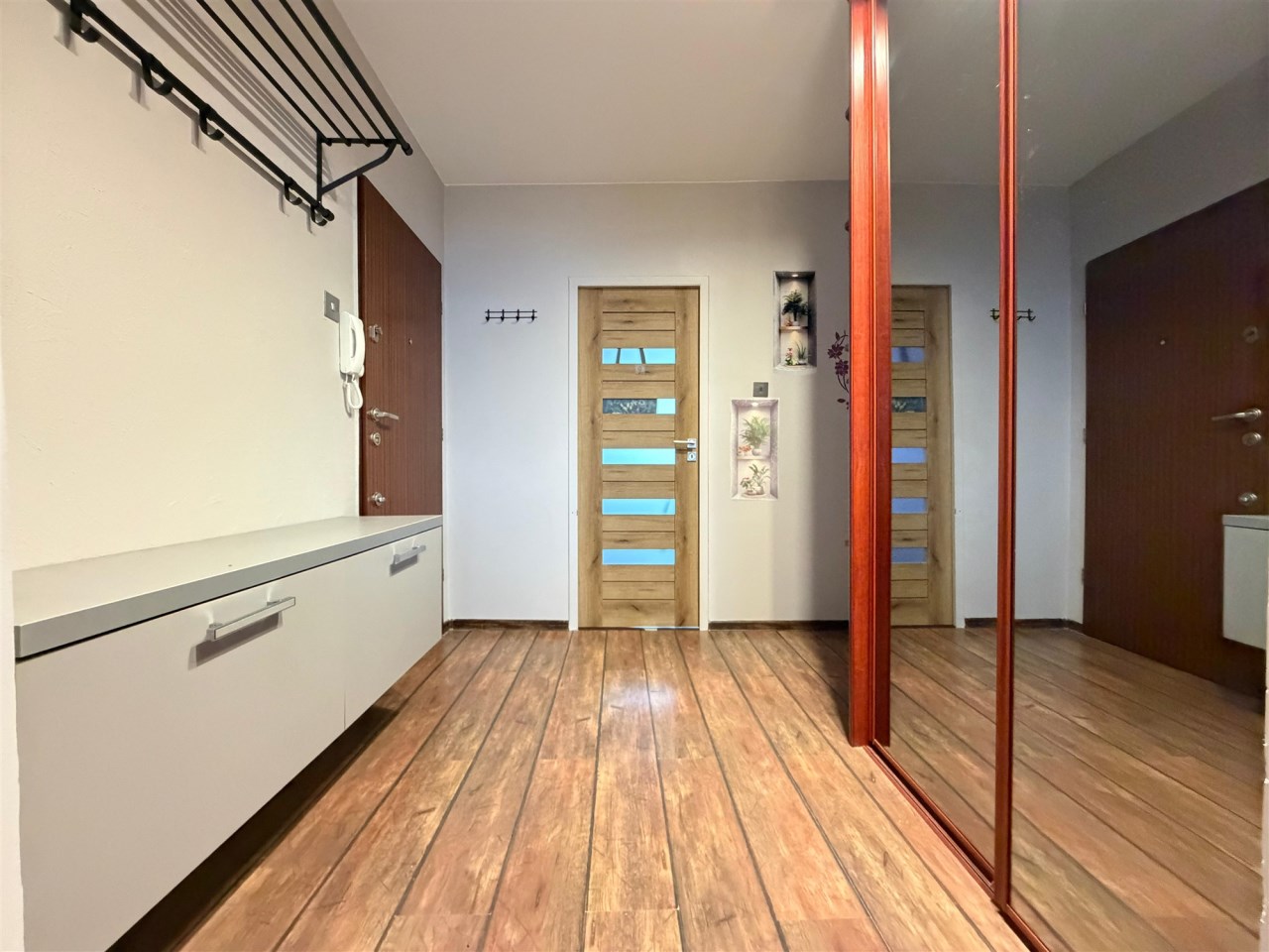 Mieszkanie ma funkcjonalny układ, który zapewnia komfort codziennego użytkowania. Dwa niezależne pokoje umożliwiają swobodną aranżację przestrzeni według własnych potrzeb.