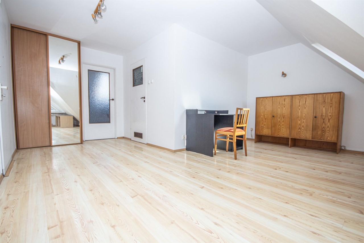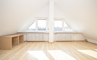 świeżo wymienione okna połaciowe, budynek po remoncie dachu z zadbaną klatką schodową.