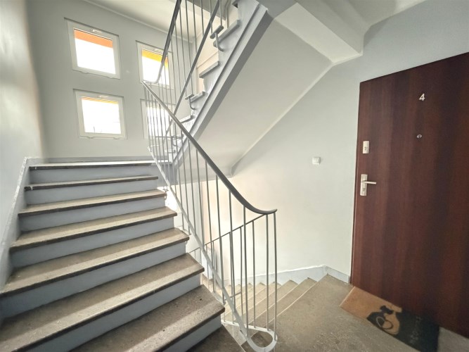 W pobliżu znajduję się kąpielisko z plażą, park na dłuższe spacery oraz siłownia pod chmurką, jest również szkoła, markety spożywcze oraz komunikacja miejska. Nieruchomość o powierzchni 47,79m2 znajdujące się na drugim piętrze składa się z dwóch pokoi, kuchni, małej łazienki i osobnego wc. Korytarz daje możliwości aranżacyjne pod względem miejsc na przechowywanie. Niewątpliwym atutem jest doświetlenie mieszkanie, co czyni je słonecznym i ciepłym nawet w ponure dni.