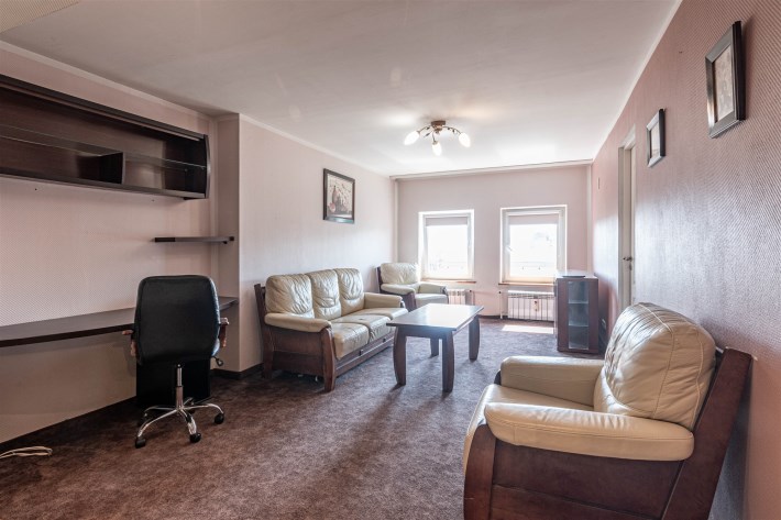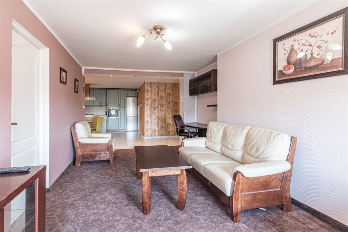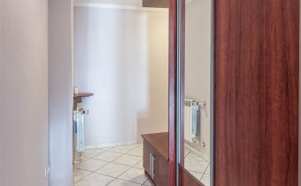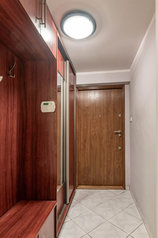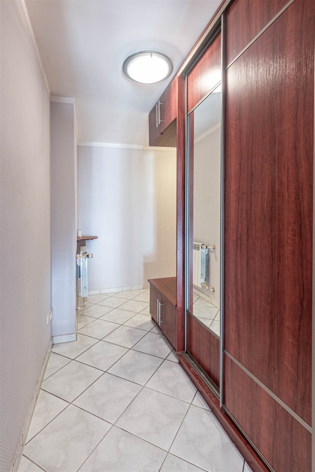 W pokojach wykładzina dywanowa, ściany tapetowane. W aneksie kuchennym, przedpokoju i części pokoju na podłodze terakota. Łazienka razem z wc w glazurze i terakocie, wanna. W przedpokoju duża zabudowa typu komandor.