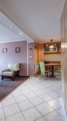 Mieszkanie powstałe z adaptacji poddasza - pokoje przechodnie. Ekspozycja okien południowa. Lokal składa się z pokoju dziennego, kuchni w formie aneksu, sypialni, garderoby, łazienki i przedpokoju .