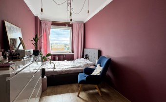 W skład mieszkania wchodzą: salon z wyjściem na balkon, dwie ustawne sypialnie, osobna, widna kuchnia, łazienka z WC, przedpokój.