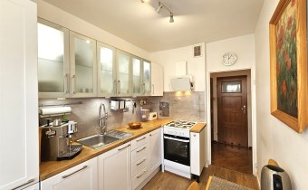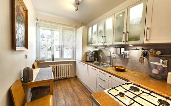 W cenie mieszkania pozostaje większość umeblowania oraz zabudowa kuchenna z lodówką, kuchenką, pochłaniaczem i zmywarką.