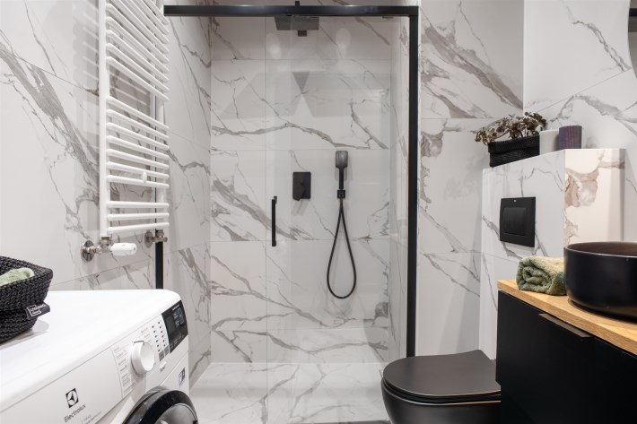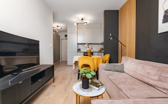 Wnętrze jest w pełni umeblowane i wyposażone w niezbędne sprzęty AGD i RTV, takie jak zmywarka, lodówka, piekarnik, płyta grzewcza, pochłaniacz, pralka oraz telewizor. Dzięki temu nowy właściciel może wprowadzić się od razu, zabierając jedynie osobiste rzeczy. Mieszkanie może również stanowić atrakcyjną opcję inwestycyjną, gotową do wynajmu bez dodatkowych nakładów.