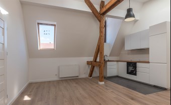 Adaptacja poddasza. Mieszkanie w bardzo dobrym standardzie, zaaranżowany w nowoczesnym stylu - salon otwarty na przedpokój, połączony z aneksem kuchennym, duża sypialnia. Łazienka połączona z wc. Ekspozycja okien jednostronna, północno wschodnia.