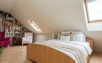 I poziom o powierzchni 33,50  m kw to salon z aneksem kuchennym i wyjściem  na słoneczny balkon, łazienka. Dodatkowo przedpokój (nie wliczony w powierzchnię, został zabudowany za zgodą wspólnoty). II poziom to obecnie otwarta przestrzeń  o powierzchni   15,3 m kw z oknami połaciowymi. Wcześniej właściciele mieli tam 2 oddzielne pokoje. Na drugim poziomie w niektórych miejscach niewielkie skosy.