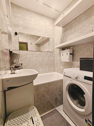 Wyposażenie łazienki wanna, umywalka, pralka, lustro