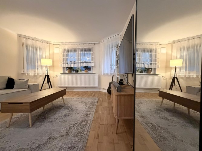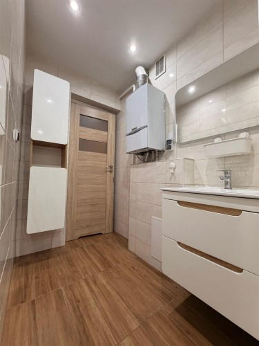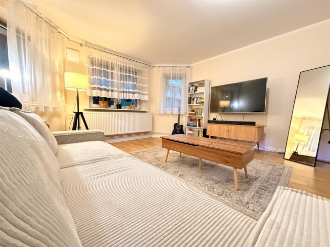 Mieszkanie jest w bardzo dobrym stanie, remontowane zaledwie kilka lat temu. Na podłogach są kafle i deska barlinecka, okna PCV, ściany gładzone malowane. W mieszkaniu jest zainstalowana rekuperacja ścienna, co gwarantuje zawsze świeże powietrze w mieszkaniu.