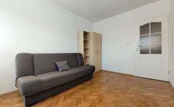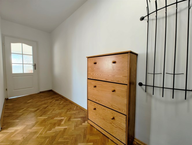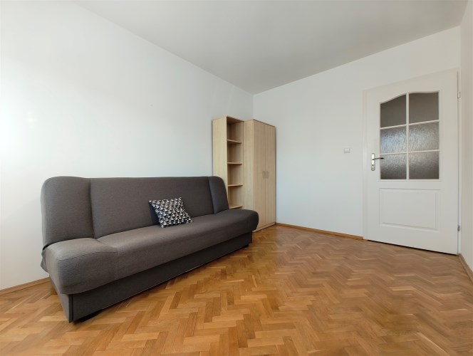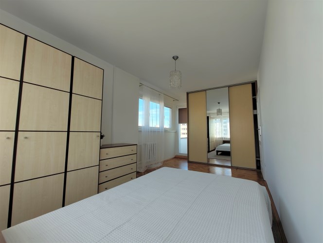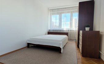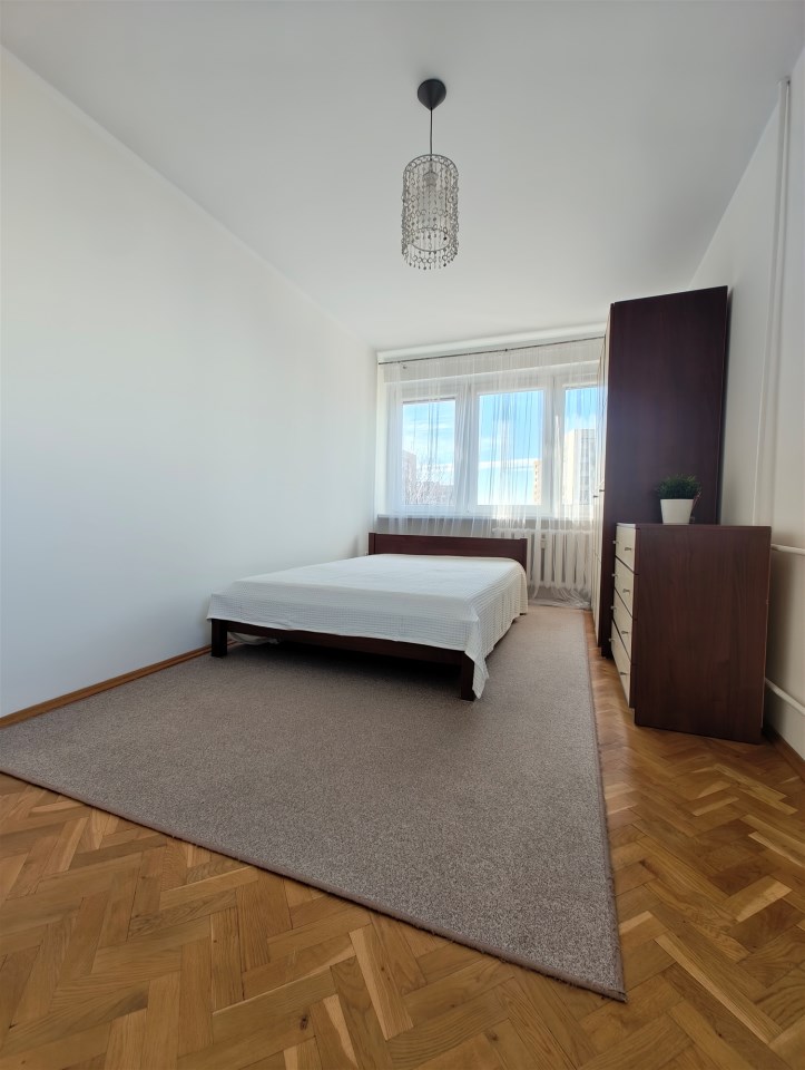 Przestronne pokoje o powierzchni ok. 18 m², 16 m² oraz 12 m² są ustawne i słoneczne. W całym mieszkaniu znajduje się elegancki dębowy parkiet. Instalacja elektryczna została wymieniona na miedzianą. W sypialni zamontowane rolety zaciemniające.