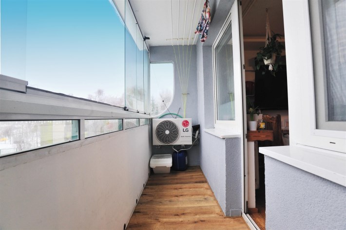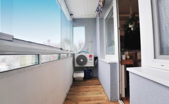- balkon zabudowany szybami bezramowymi (rozsuwany)