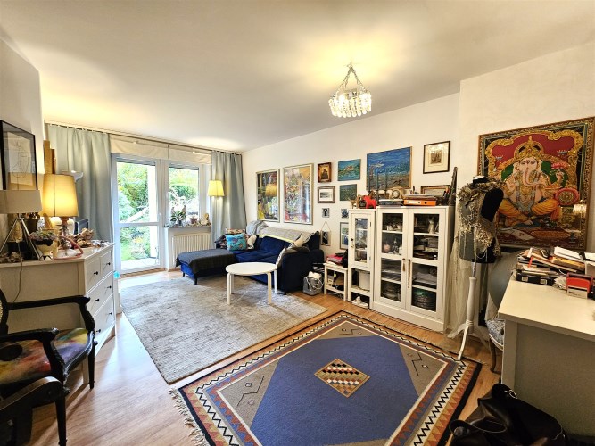 Mieszkanie o powierzchni 64,47 m2. Składa się z przestronnego salonu, dwóch sypialni, oddzielnej kuchni z oknem, łazienki z wanną i WC oraz korytarza. Z salonu wyjście na balkon, a z niego bezpośrednie zejście do zagospodarowanego ogródka. Ogrzewanie i ciepła woda z sieci miejskiej. Mieszkanie ciepłe środkowe.
