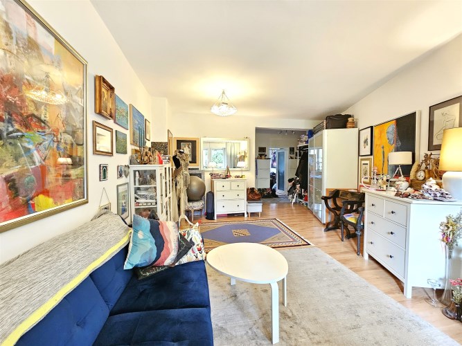 Mieszkanie o powierzchni 64,47 m2. Składa się z przestronnego salonu, dwóch sypialni, oddzielnej kuchni z oknem, łazienki z wanną i WC oraz korytarza. Z salonu wyjście na balkon, a z niego bezpośrednie zejście do zagospodarowanego ogródka. Ogrzewanie i ciepła woda z sieci miejskiej. Mieszkanie ciepłe środkowe.