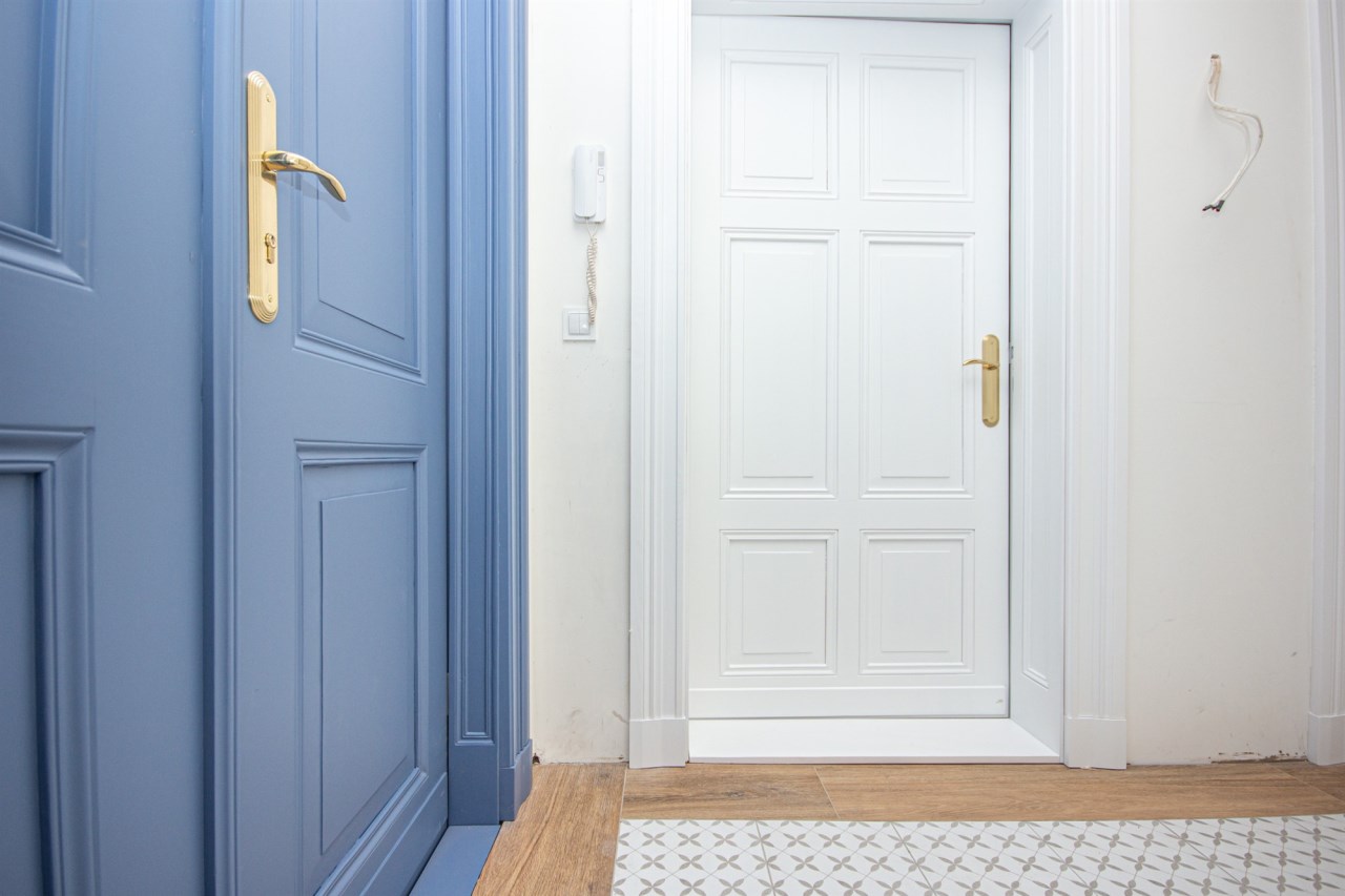 - przestronny korytarz z pięknymi drzwiami wejściowymi