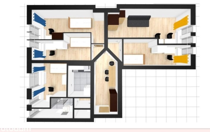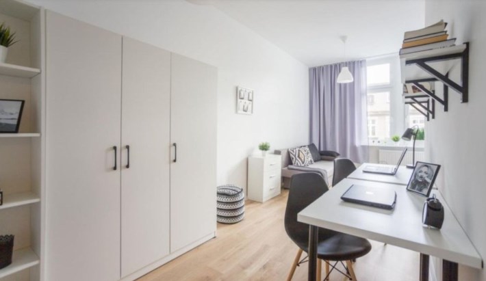 Obecnie mieszkanie jest wynajmowane przez 5–6 osób (największy pokój został przystosowany dla dwóch najemców).