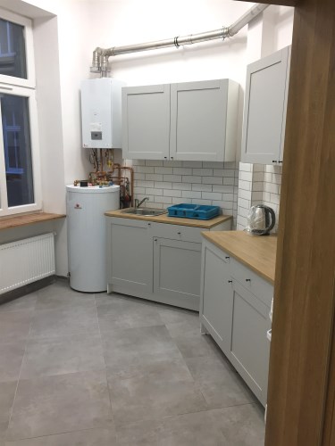 Na pierwszym piętrze zadbanej, ocieplonej kamienicy w samym sercu miasta znajduje się wyjątkowe mieszkanie o powierzchni 142,5 m². Nieruchomość przeszła w 2022 roku generalny remont wraz z kompleksową modernizacją – wykonano nowe instalacje elektryczne i wodno-kanalizacyjne, wymieniono stolarkę okienną i drzwiową, położono podłogi, odnowiono ściany, a także zamontowano nowoczesny piec gazowy z zasobnikiem na wodę. Całość wykończono w wysokim standardzie, dzięki czemu lokal jest w pełni gotowy do użytkowania bez dodatkowych nakładów.