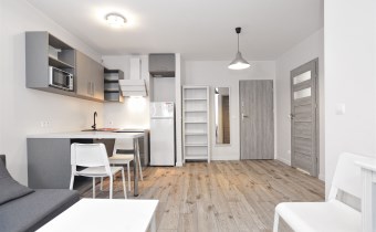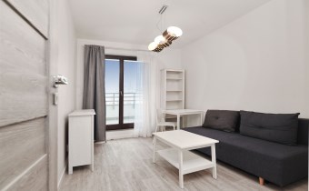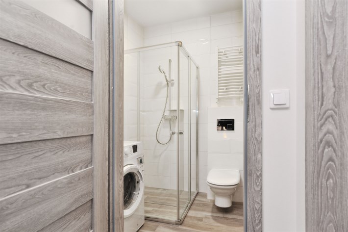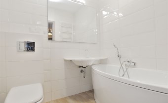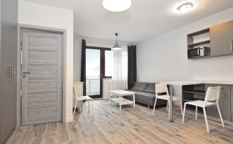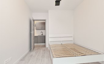 Na I poziomie, hol, pokój dzienny z aneksem kuchennym, sypialnia oraz łazienka z wanną.