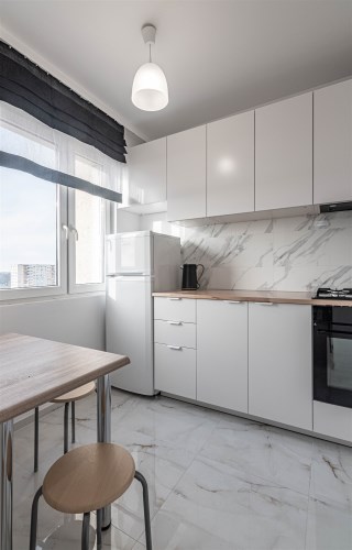Mieszkanie w bardzo dobrym stanie, umeblowane i wyposażone (w pokoju wypoczynek, komoda, stół, dwa stołki, stolik kawowy). Kuchnia umeblowana i wyposażona - płyta gazowa, piekarnik elektryczny, lodówka, zmywarka, okap. W łazience z kabiną prysznicową znajduje się pralka. W przedpokoju szafa. Ekspozycja okien zachodnia z widokiem na panoramę Bezrzecza. Ogrzewanie i ciepła woda z sieci miejskiej. W czynszu do spółdzielni zaliczki na wodę zimną, ciepłą oraz ogrzewanie.