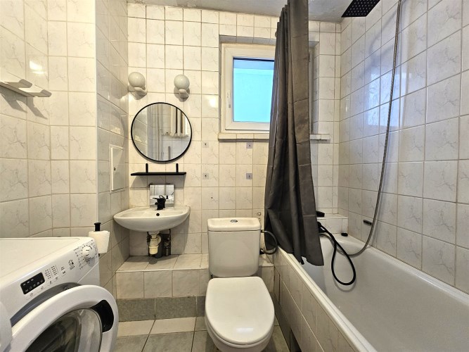 Składa się z dwóch pokoi, oddzielnej kuchni z oknem, łazienki z wanną, umywalką, pralką i WC oraz przedpokoju. Z salonu wyjście na duży balkon. Ogrzewanie i ciepła woda z sieci miejskiej. Mieszkanie słoneczne, ciepłe środkowe. Nieruchomość częściowo wyposażona i meblowana. Kuchnia z oknem wyposażona w szafki, lodówką oraz kuchenką. Czynsz najmu 1900zł + 870zł czynsz do zarządcy + liczniki. Wolne od zaraz.