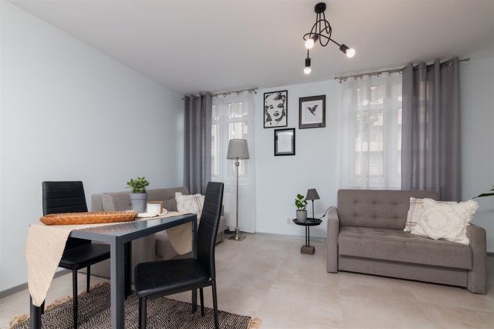 Umowy na internet (światłowód) lub telewizję kablową najemca może zawrzeć samodzielnie. Kaucja zwrotna 2000 zł. Obie sofy widoczne na zdjęciach są rozkładane. Mieszkanie dla jednej lub dwóch osób.